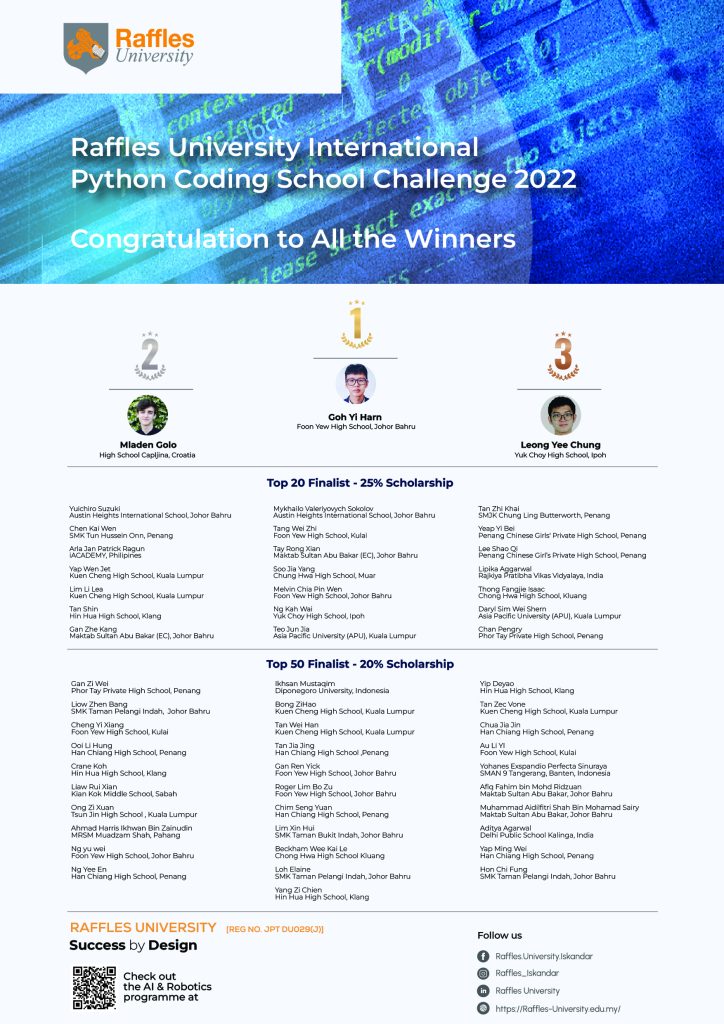 Raffles University held a successful International Python Coding School Challenge 2022 with 375 registration!