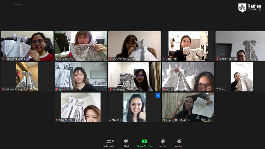 On 24 June 2020, Raffles Fashion Designer held a sharing session on the virtual platform – Zoom. They were sharing their artworks of #MCQUEENCREATORS PAPER DOLL Project.