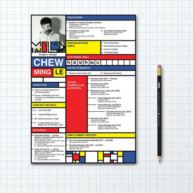 Students are required to create a personal identity system that speaks about themselves. It aims to give a strong impression that compels the employers in design industry. The things that they want to deliver through this identity system can be their signature styles, their strengths, their personalities, and so on.