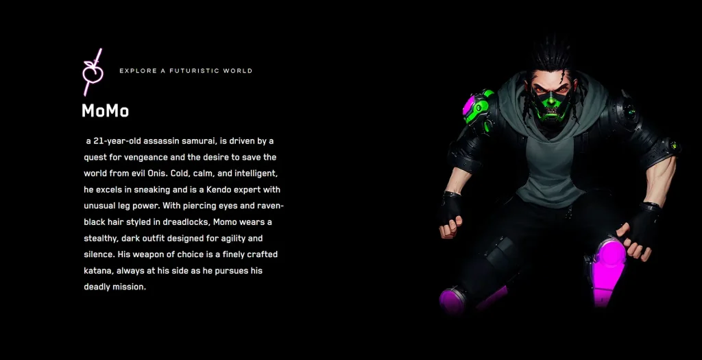 In the neon-lit streets of Edo-Tek, technology and cybernetics reign supreme, and human race is on the brink of collapse. You play as Momo, a assassin samurai with an implant which brings infinity of power.