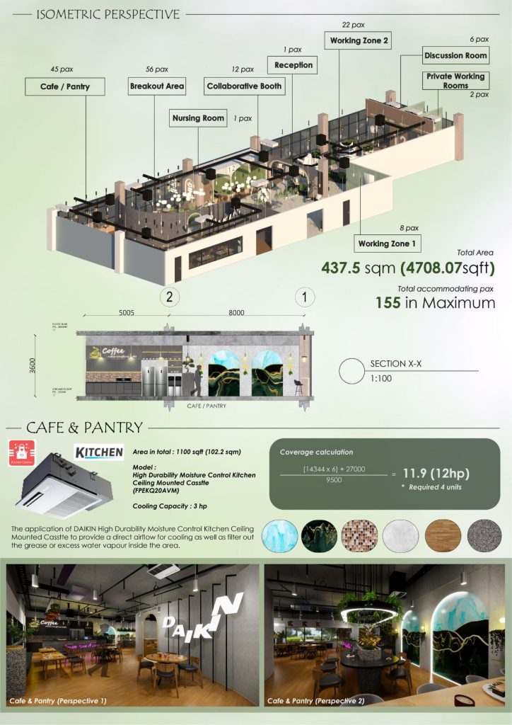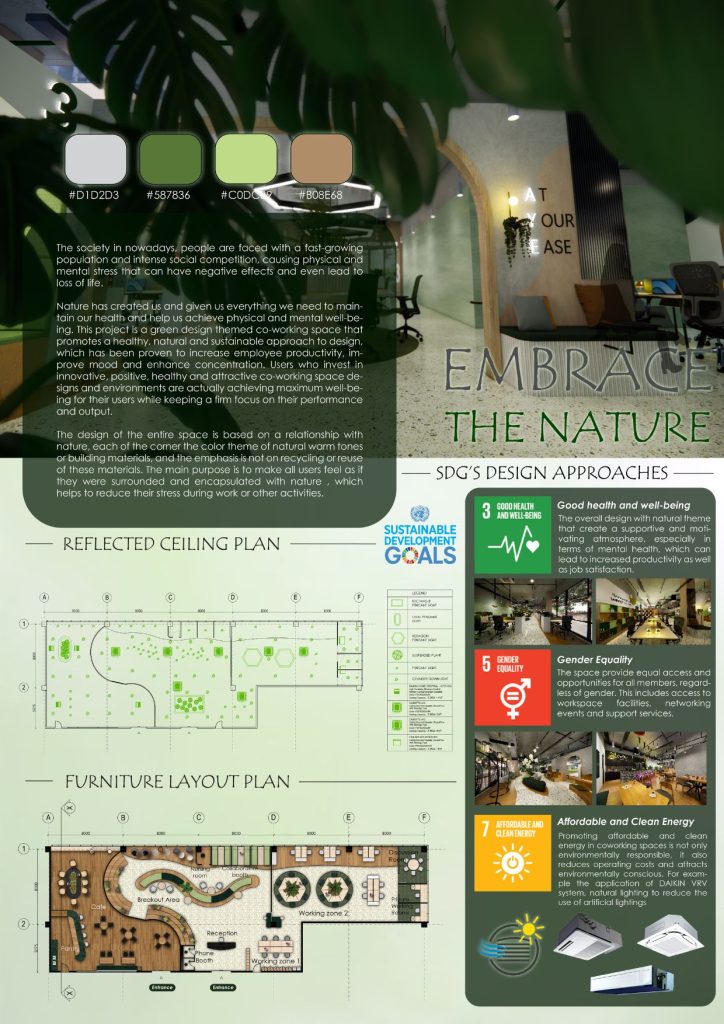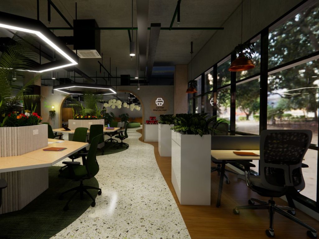 This project is a green-design-themed co-working space that promotes a healthy, natural, and sustainable approach to design. Such an approach has been proven to increase employee productivity, improve mood, and enhance concentration.