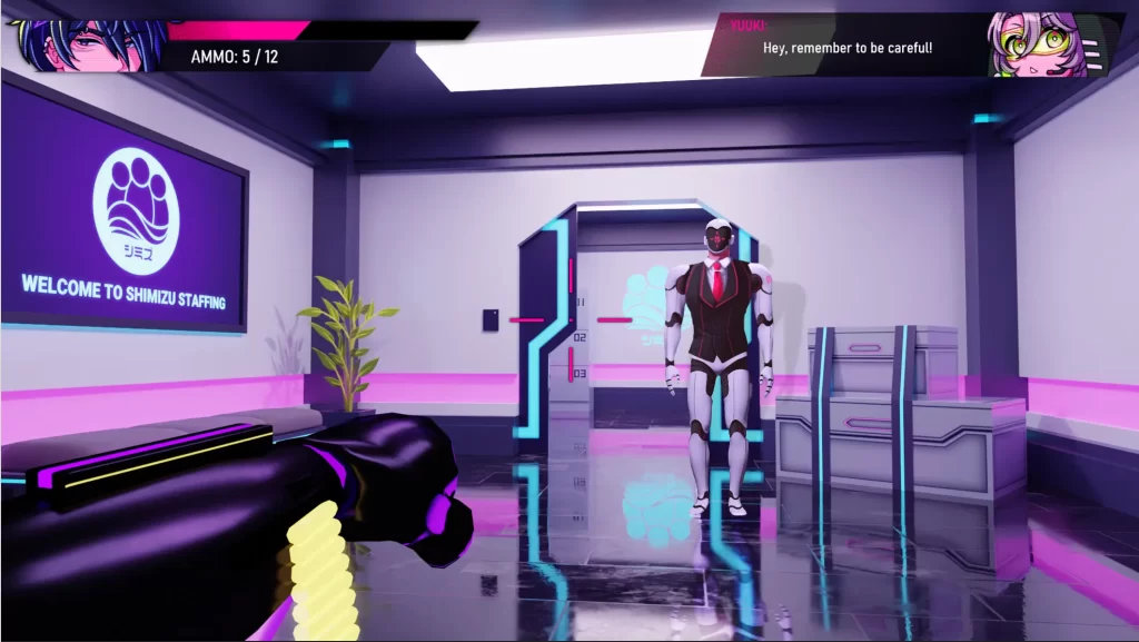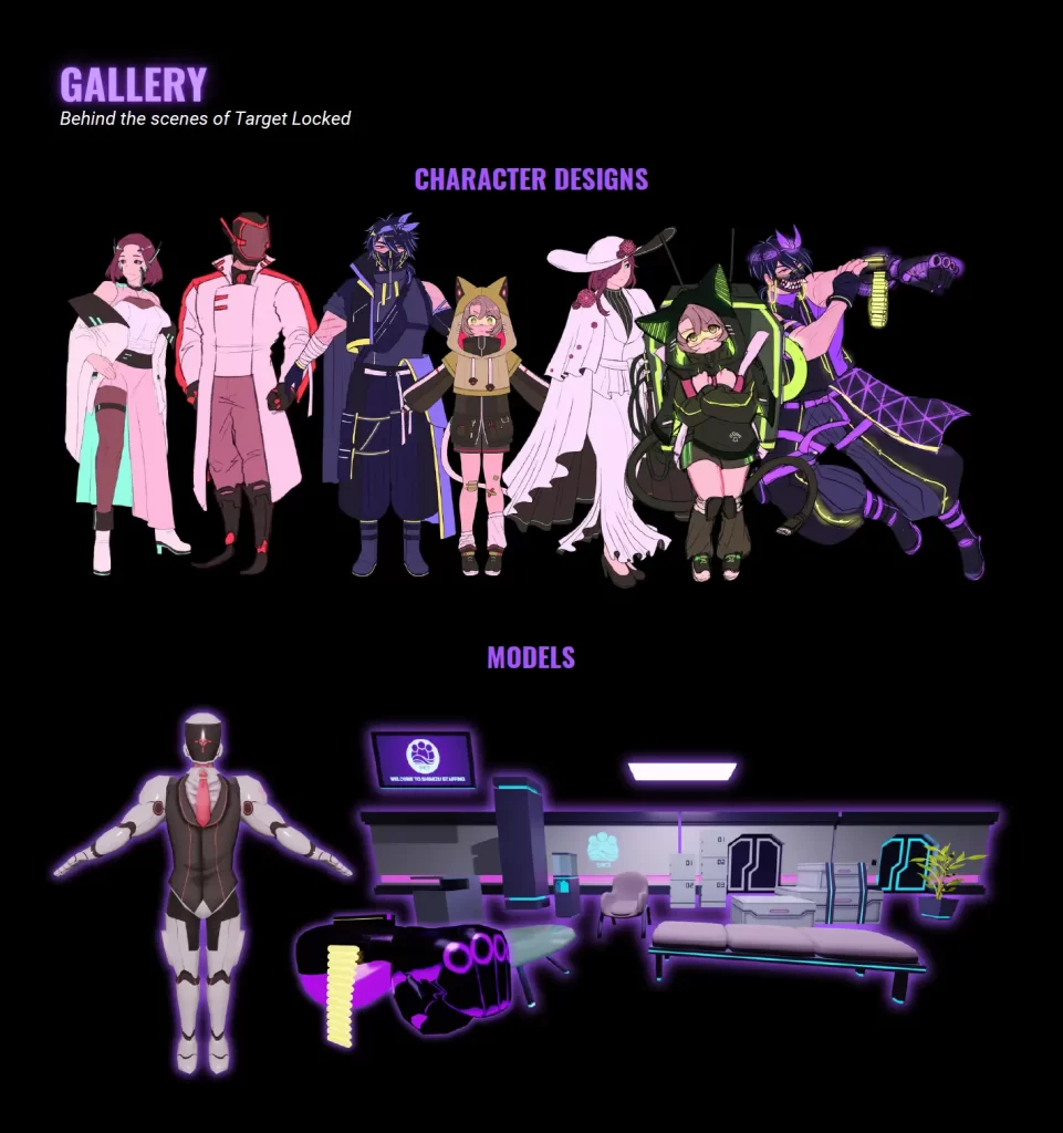 Target Locked is an FPS game where the player controls Ryuuya Hirohashi, a cold, seasoned bounty hunter, to infiltrate a corporate building with the help of his partner, a young hacker called Yuuki, to eliminate his target.