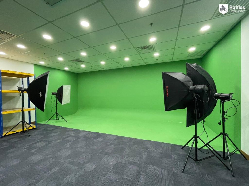 Raffles University’s Photography & Videography Studio (PV Studio) is equipped with a green cinematic screen and state-of-the-art equipment.